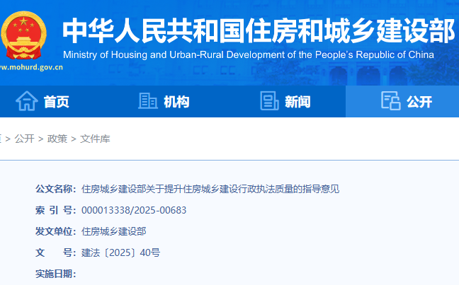 住房城乡建设部:关于提升住房城乡建设行政执法质量的指导意见