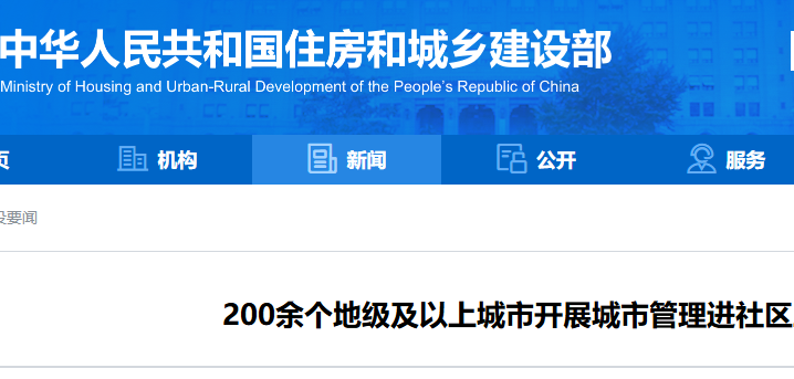 200余个地级及以上城市开展城市管理进社区工作 在日前举行的全国城市更新工作推进会上,住房城乡建设部表示,要下功夫抓好系统治理和基层治理,推动城市管理进社区等工作,推进城市治理现代化。 据...