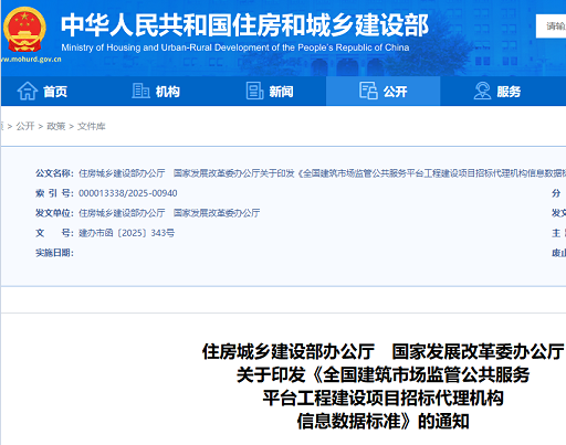 住房城乡建设部办公厅 国家发展改革委办公厅关于印发《全国建筑市场监管公共服务平台工程建设项目招标代理机构信息数据标准》的通知 各省、自治区、直辖市住房城乡建设厅(委、管委)、发展改革委、招...