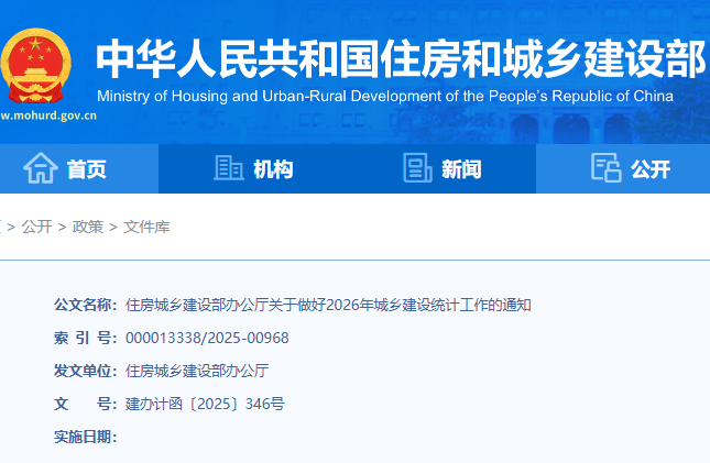 住房城乡建设部:关于做好2026年城乡建设统计工作的通知