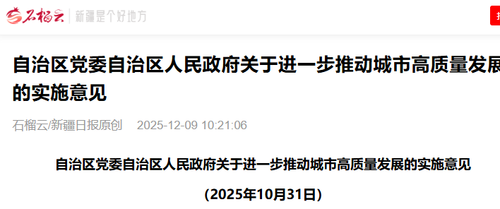 自治区党委自治区人民政府关于进一步推动城市高质量发展的实施意见自治区党委自治区人民政府关于进一步推动城市高质量发展的实施意见(2025年10月31日) 为深入贯彻落实中央城市工作会议精神,按...