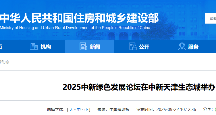 2025中新绿色发展论坛在中新天津生态城举办 日前,2025中新绿色发展论坛在中新天津生态城举办。本届论坛以“中新共筑绿色发展基石 携手深化新城新区建设”为主题。住房城乡建设部部长倪虹、新加坡...