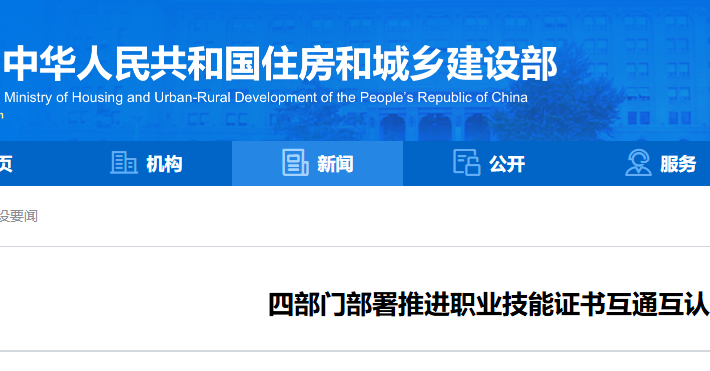 住房城乡建设部等四部门部署推进职业技能证书互通互认