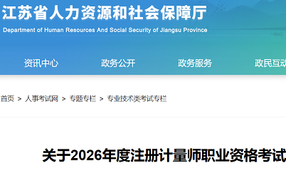 江苏省2026年注册计量师职业资格考试考务工作通知