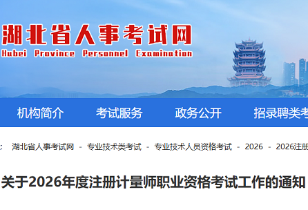 湖北省2026年度注册计量师职业资格考试工作通知