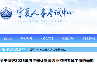 宁夏2026年度注册计量师职业资格考试工作通知