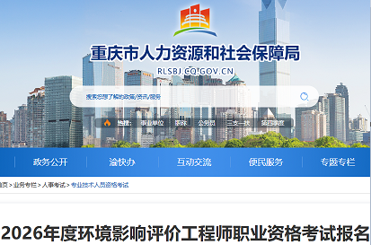 重庆市2026年度环境影响评价工程师职业资格考试报名工作通告按照人力资源和社会保障部人事考试中心《关于2026年度环境影响评价工程师职业资格考试考务工作的通知》(人考中心函〔2026〕6号)和重庆市...