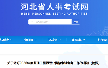 河北省2026年度监理工程师职业资格考试考务工作通知