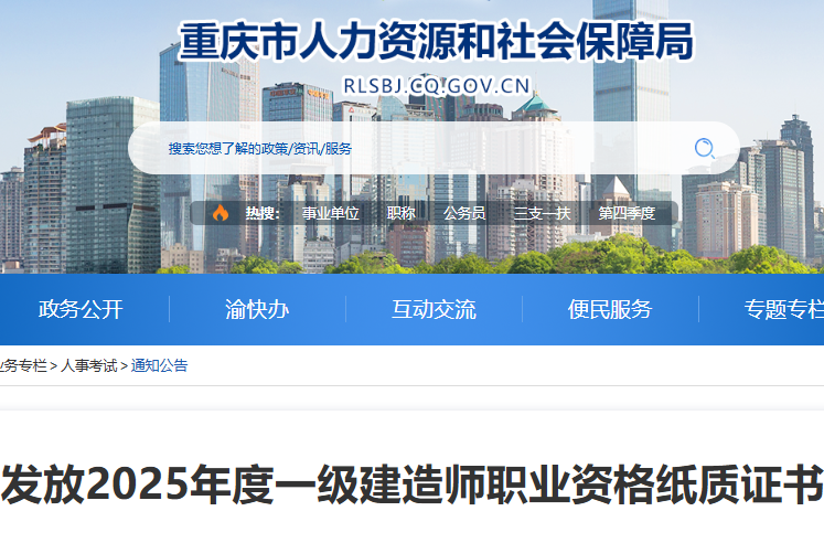重庆2025年度一级建造师职业资格纸质证书发放通告