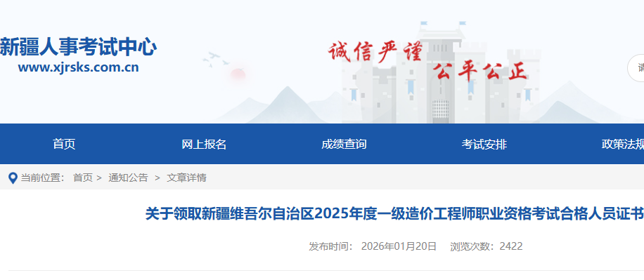 新疆2025年一级造价工程师考试合格人员证书领取通知