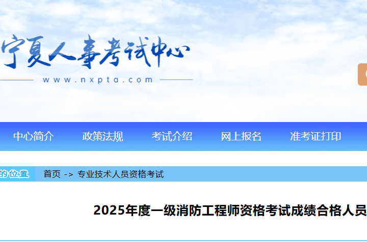 宁夏2025年一级消防工程师考试成绩合格人员公示及资格复审安排