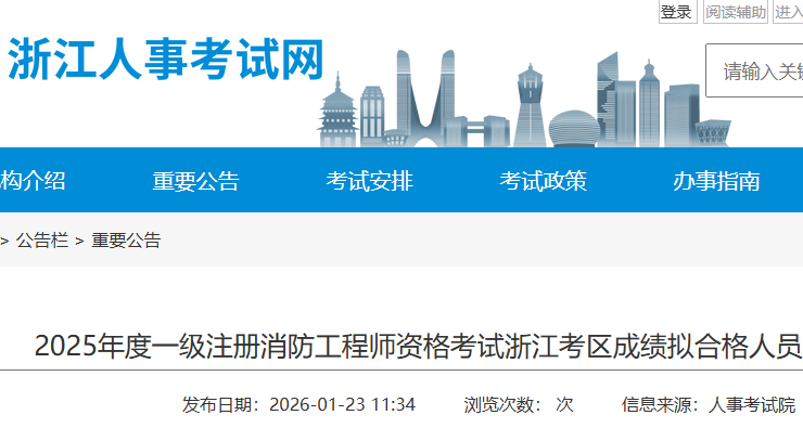 浙江考区2025年一级消防工程师资格考试成绩拟合格人员公示