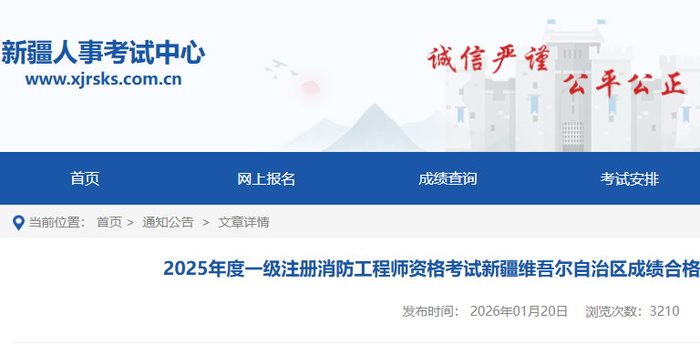 新疆2025年一级消防工程师考试成绩合格、拟取得资格证书人员公示