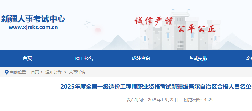 新疆考区2025年一级造价工程师资格考试合格人员名单公布