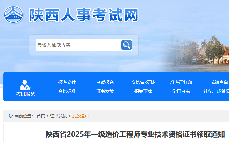 陕西省2025年一级造价工程师专业技术资格证书领取通知