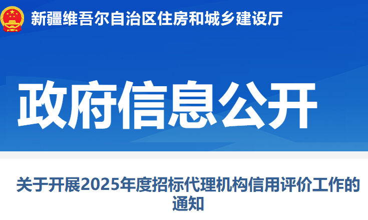 自治区住建厅:关于开展2025年度招标代理机构信用评价工作的通知