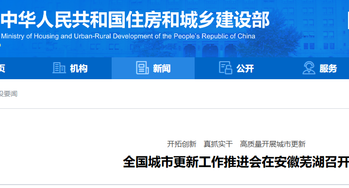 开拓创新 真抓实干 高质量开展城市更新全国城市更新工作推进会在安徽芜湖召开 11月21日,住房城乡建设部在安徽省芜湖市召开全国城市更新工作推进会,深入学习贯彻党的二十届四中全会精神和中央城...