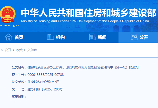 住建部:印发城市体检可复制经验做法清单(第一批)的通知
