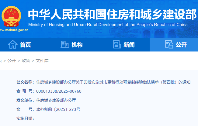 住建部:印发实施城市更新行动可复制经验做法清单(第四批)的通知
