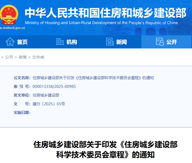 住建部:关于印发《住房城乡建设部科学技术委员会章程》的通知