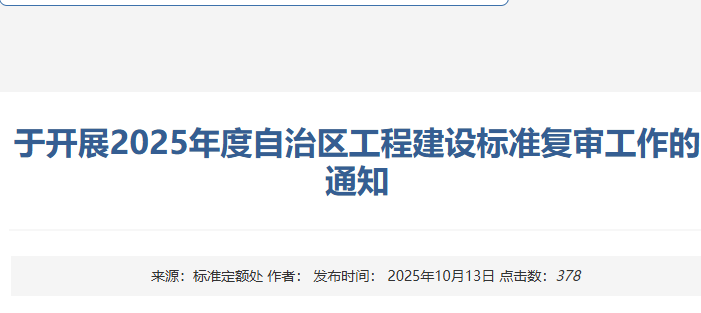 关于开展2025年度自治区工程建设标准复审工作的通知