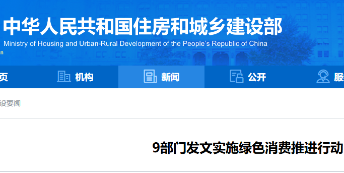 住房城乡建设部等9部门发文实施绿色消费推进行动