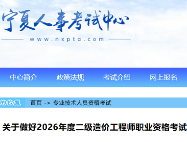 宁夏2026年二级造价工程师职业资格考试工作通知