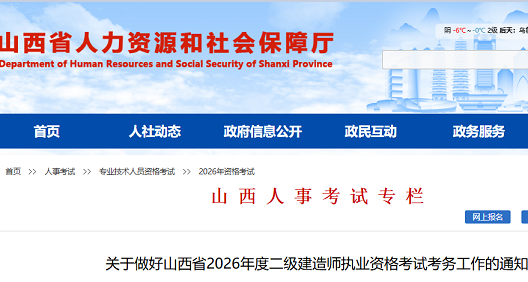 山西省2026年度二级建造师执业资格考试考务工作的通知各有关单位:根据《住房和城乡建设部执业资格注册中心关于提供2026年度二级建造师执业资格考试服务的说明》的要求,现将我省2026年度二级建造师...