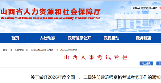 山西省2026年度全国一、二级注册建筑师资格考试考务工作的通知各有关单位:根据《人力资源和社会保障部人事考试中心 住房和城乡建设部执业资格注册中心 关于2026年度全国一、二级注册建筑师资格考试...