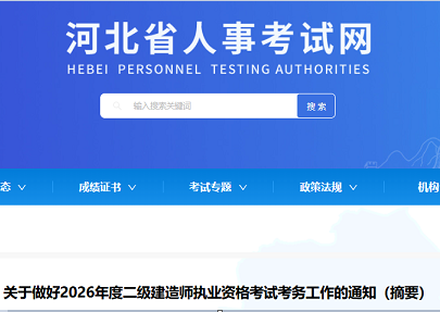 河北省2026年度二级建造师执业资格考试考务工作通知按照《住房和城乡建设部执业资格注册中心关于提供2026年度二级建造师执业资格考试服务的说明》有关安排,为做好我省二级建造师执业资格考试相关...