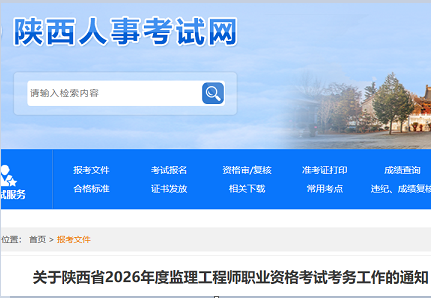 陕西省2026年度监理工程师职业资格考试考务工作通知