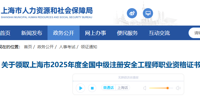上海市2025年中级安全工程师资格证书(合格证明)领取通知