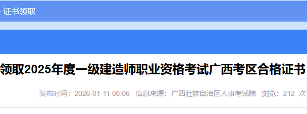 广西2025年一级建造师资格考试合格证书(合格证明)领取通知