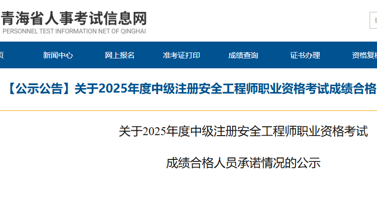 青海省2025年中级安全工程师考试成绩合格人员承诺情况公示