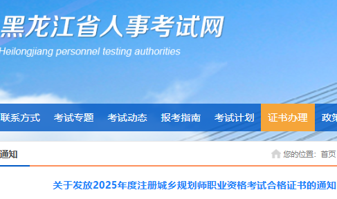 黑龙江省2025年城乡规划师职业资格考试合格证书发放通知