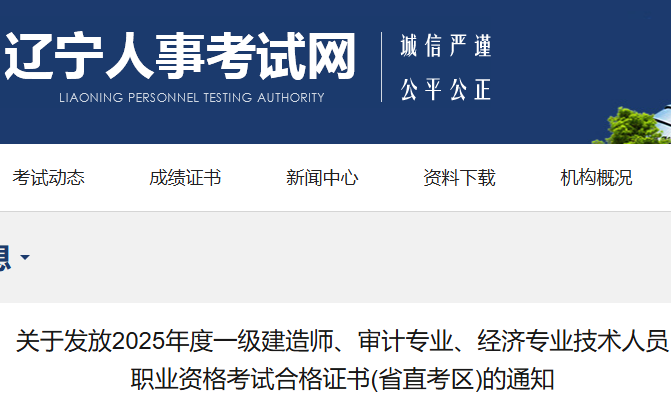 辽宁省2025年一级建造师考试合格证书(省直考区)发放通知