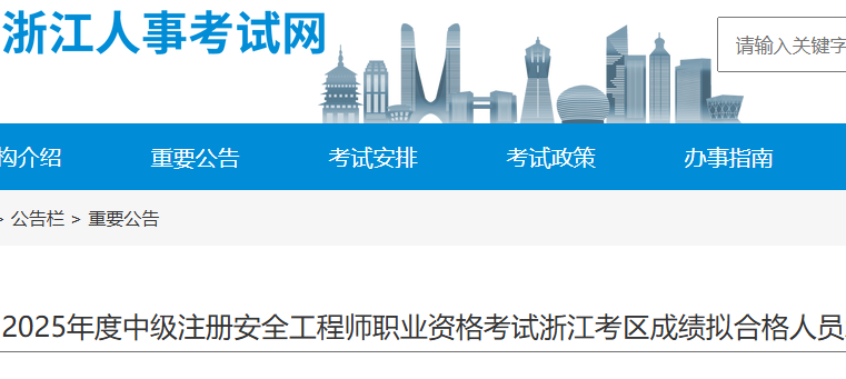 浙江考区2025年度中级注册安全工程师职业资格考试成绩拟合格人员承诺情况公示 根据《国务院办公厅关于全面推行证明事项和涉企经营许可事项告知承诺制的指导意见》(国办发〔2020〕42号)、《人力资源社...