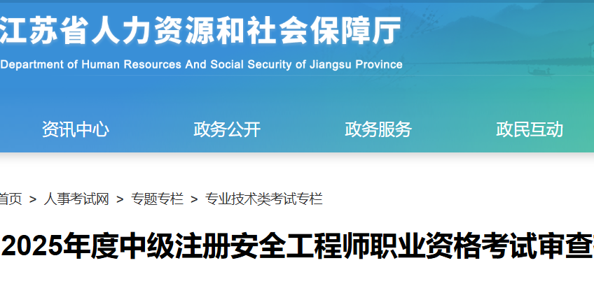 江苏省2025年度中级注册安全工程师职业资格考试审查有关事项的说明根据《江苏省人力资源社会保障厅关于进一步加强专业技术人员资格考试审查工作的通知》(苏人社发〔2018〕383号)、省人力资源社会保障...