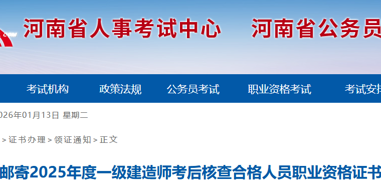 河南省2025年度一级建造师考后核查合格人员职业资格证书邮寄通知