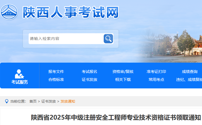 陕西省2025年中级安全工程师专业技术资格证书领取通知